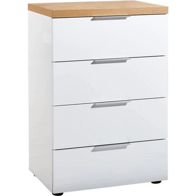 KOMODA, biela, farba duba, 60/89/43 cm - TYP: XP_PKIDECOM1-BIR - KP+FR BIELA HG, DUB NB, 4 ZÁS. - Š/V/H: 60 X 89 X 43 CM