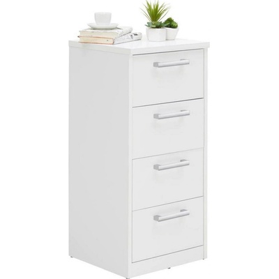 KOMODA, biela, 38/84/36 cm - TYP: 102 - 4L-B38, - BIELÝ DEKOR, 4 ZÁSUVKY, - Š/V/H: 38/84/36 CM