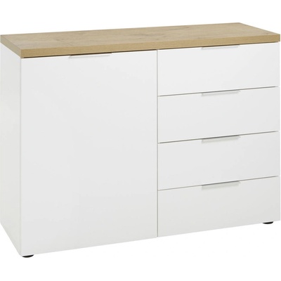 KOMODA, biela, farba duba, 120/89/43 cm - TYP: XP_PFIDECOM2-BIELA HG - DUB NB, 1 DVERE, 4 ZÁSUVKY - Š/V/H: 120X89X43 CM