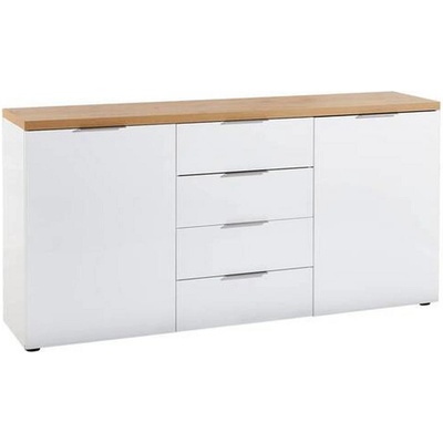 ŠIROKÁ KOMODA, biela, farby duba, 180/89/43 cm - TYP: XP_PFIDESDB1-BIR - BIELA / DUB, 2 DVEŘE,4 ZÁS. - Š/V/H: 180 X 89 X 43CM