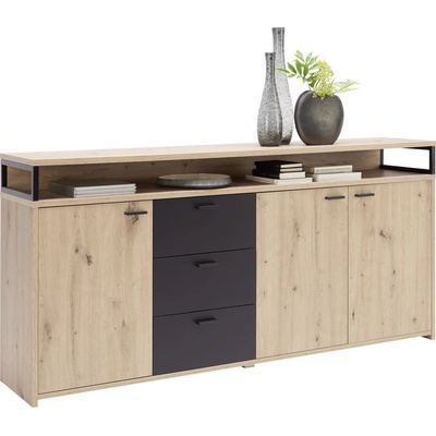 ŠIROKÁ KOMODA, dub artisan, antracitová, 178,6/88,7/38 cm - DEKOR DUB ARTISAN - ANTRACITOVÉ PRVKY - Š/V/H: 178,6/88,7/38 CM